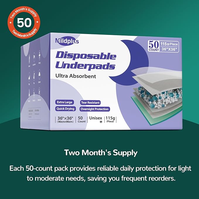 - Multipurpose: MILDPLUS disposable underpads are suitable for people of all genders and ages, and can be used in a variety of occasions where you need it. It will bring you companionship, love and security.