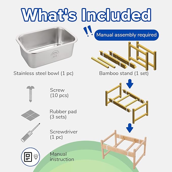- [Easy Installation]: PEDAY elevated dog bowl comes with stainless steel screws, free tools, and assembly instructions. Please don’t hesitate to contact us if you have any problem