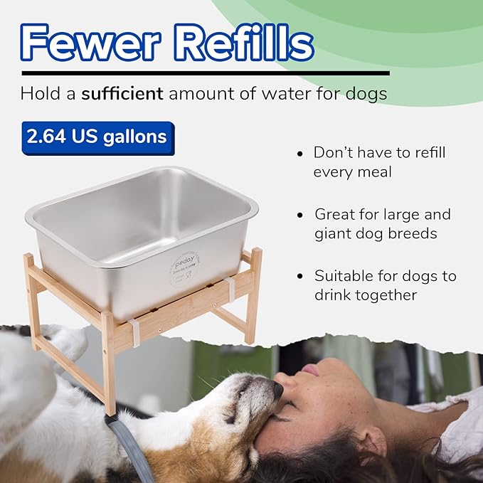 PEDAY 2.64 Gallon Raise Dog Water Bowl, Human Grade 18/8 Stainless Steel