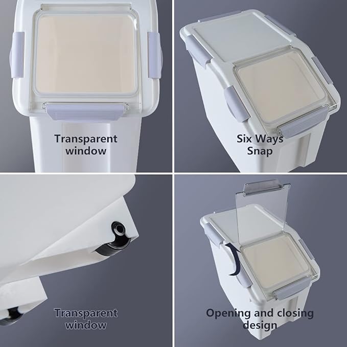 - 【LARGE CAPACITY】Large size : 13.77*7.87*13.77inch, our food storage bin is big enough, 400oz / 15L of large capacity, rice container with wheel can hold up to 25 pounds of flour and meet the daily needs of family.