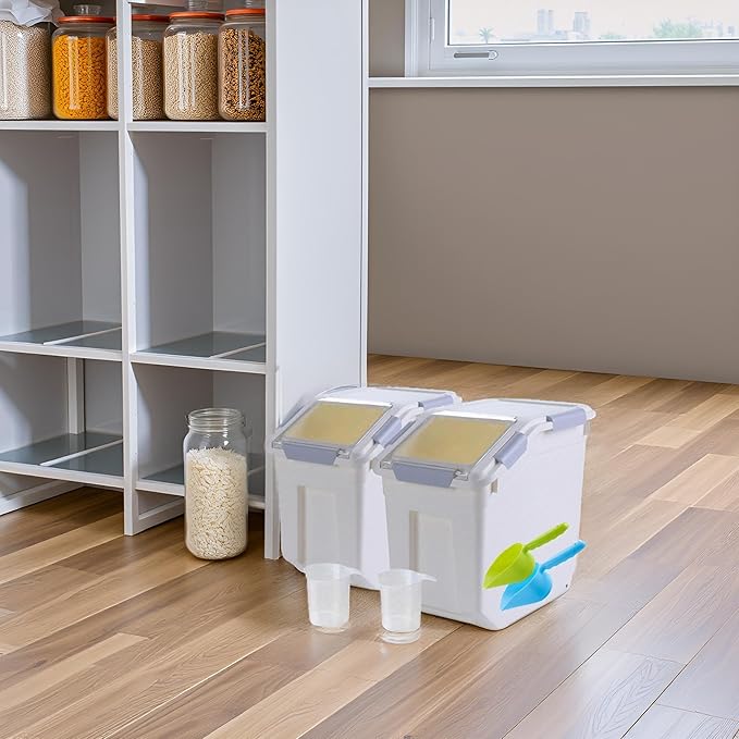 Saim Large Flour & Food Storage Container 25LB, Rice Dispenser & Dog Food Container with Lid, BPA Free Plastic for Rice, Flour, Dry Food Organization Cat Food Bin Bulk on wheels (Gray)