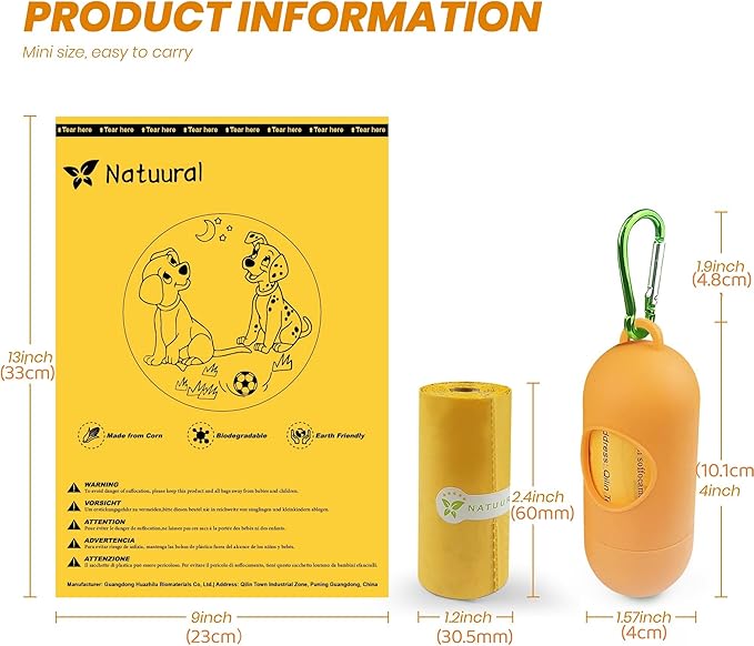 - Practical Poop Bags: Biodegradable poop bags size: 9×13 inches, Extra thick strong and easy to open, they are suitable for dogs of all sizes. Dog poop bags can also be used for cat poop cleanup, dirty baby diapers, food scraps.