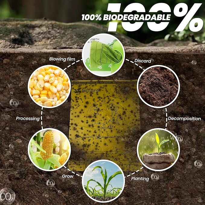 - Green & Strong: These biodegradable poop bags are designed from cornstarch materials, leakproof and tear resistant, that effectively locks in odors.