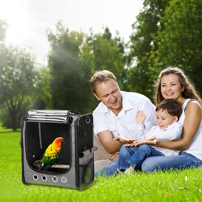 - 【LARGE WINDOWS & BREATHABLE MESH】 Roll up the sunshade of the bird travel cage and fix it. You can check the status of your pet at any time through the transparent window. The side of the bag is equipped with anti scratch ventilation net to ensure sufficient air circulation and wide vision in the bag.