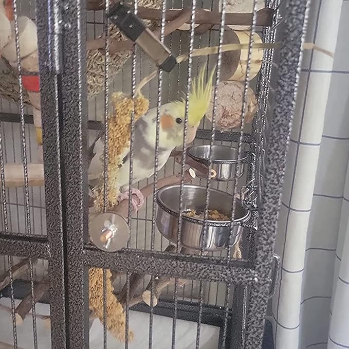 - 【SAFE BIRD FEEDER】Parrot feeding dish has strong stainless clips that it attaches to the side of the bird cage.Bird cage feeder bowl attached to the cage is stable enough.Parrot can eat and drinking water by standing on the edge of the metal bird bowls for cage