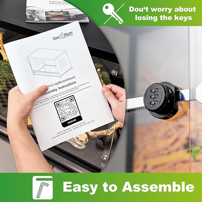 - 【Premium PVC Reptile Enclosure】Non-reflective PVC panels provide the reptiles with privacy and security, reducing anxiety and minimizing stress when you approach them. Instead of glass tanks, PVC reptile terrarium is more lightweight and durable, easier to move, simpler for deconstruction, and most important, greater to maintain heat and humidity