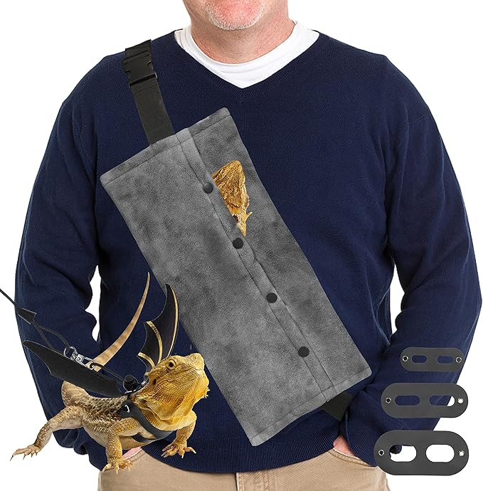 - PURPOSE: Bearded Dragon is a variable temperature animal, No only indoors, But also it's outdoor or outdoor is helpful for maintaining the core temperature of Bearded Dragon by our carrier. The personalized and stylish bat wing leash design makes you and your lizard look extra bright and unique while walking, perfect for enjoying daily walks and trips.