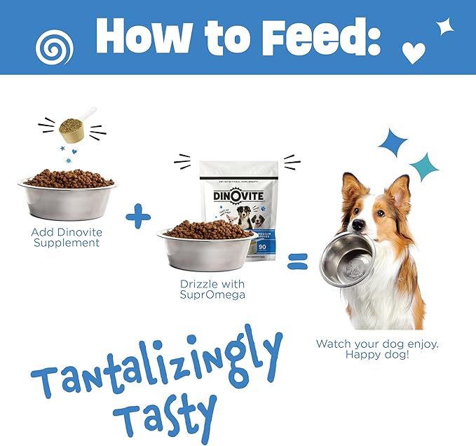 Dinovite 3 in 1 Probiotic for Puppies, Skin & Coat, Digestive Health & Joint Relief, Dog Food Toppers, Salmon Oil, Glucosamine, Allergy Relief & Itch Relief Skin Care, 90 Servings (Puppy)