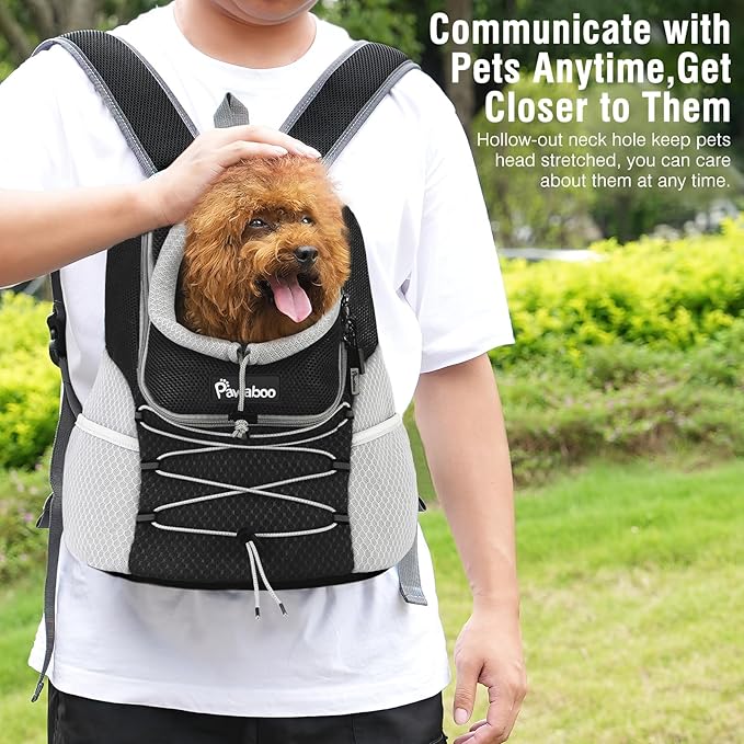 Pawaboo Pet Dog Carrier Backpack, Puppy Dog Travel Front Carrier for Small Medium Dogs Cats, Adjustable Breathable Dog Carrying Backpack with Safety Strips for Hiking, Walking (Black S Up to 5 lbs)