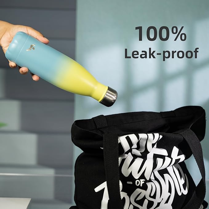 - Double Wall Vacuum Water Bottle: Keeps your drink ice cold for up to 24 hours and hot for up to 12 hours.Leak proof and dust proof design ensures the beverages stay securely contained.Non-sweat exterior prevents condensation and keeps your hands dry