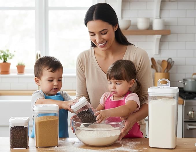 - SPACE-SAVING: Nestable containers offer efficient storage by fitting inside one another when not in use, conserving essential cupboard or pantry space. Additionally, canisters of the same size stack securely, optimizing vertical storage.