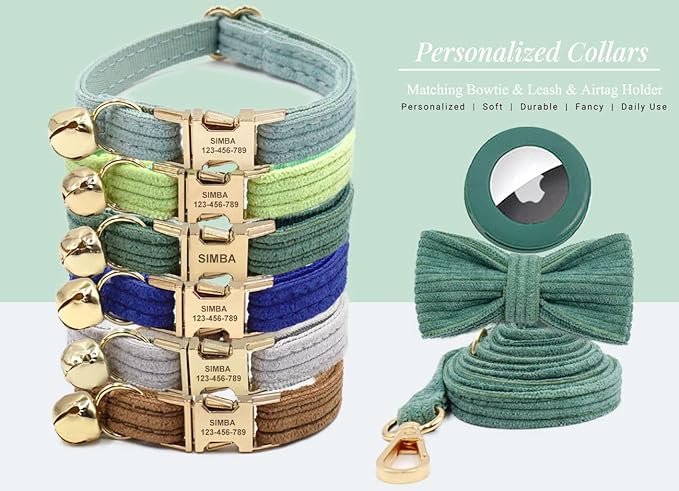 Personalized Cat Collar with Engraved Name Phone Number for Boy and Girl Kitten