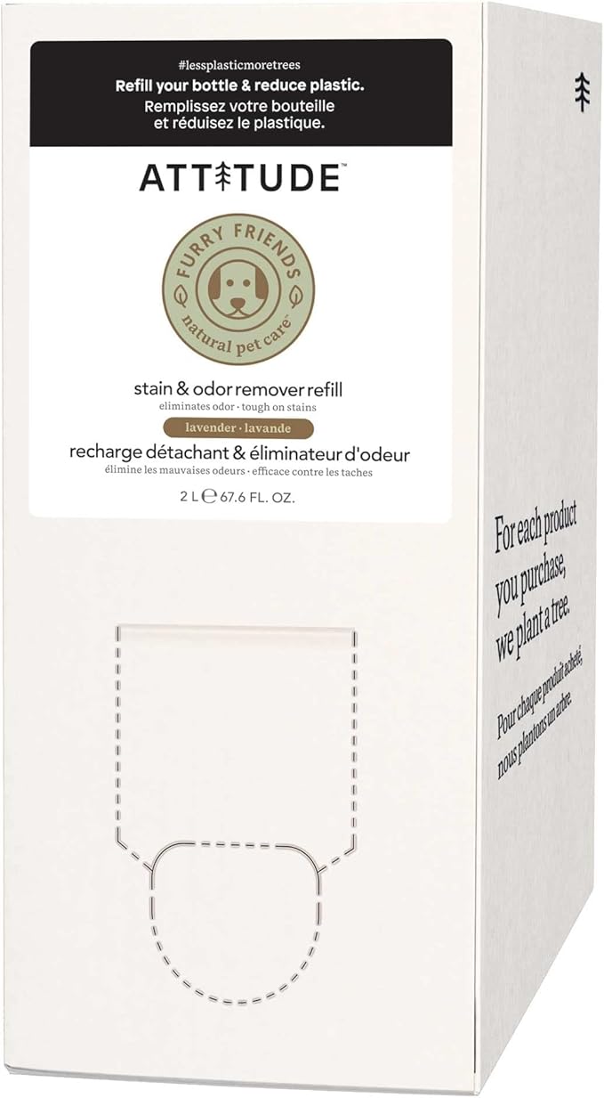 ATTITUDE Stain and Odor Remover for Pets, Plant and Mineral-Based Ingredients, Vegan and Cruelty-Free, Bulk Refill, Lavender, 67.62 Fl Oz