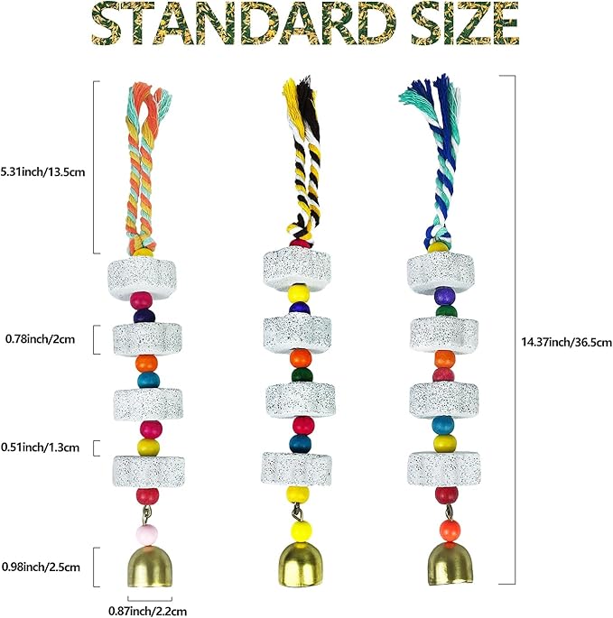 Parrot Chewing Toy with Bell - Bird & Parakeet Beak Grinding Stone - 3 Pack