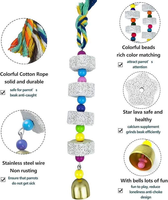 - [Exquisite design]:With a porous mineral stone and colorful beads,Chewing toys are not only well-designed,attractive to pets,but also environmentally friendly.It is made of natural materials to ensure that it does not harm your pet.