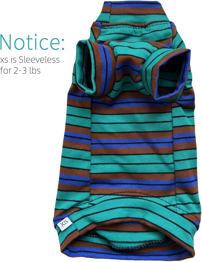 Vintage Stripes Sphynx Hairless Cats Shirt Cotton Cat Turtleneck Pet Clothes Kitten T-Shirts with Sleeves for Sphynx Cornish Rex, Devon Rex, Peterbald (Green Stripe, X-Small (Pack of 1))