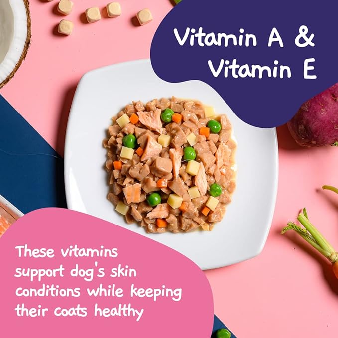 - Skin and Coat: Our soft dog food targets your dogs skin and coats, using salmon for omega-3 fatty acids, sweet potato for dietary fiber, as well as carrots, coconut oil and zinc for the skin.