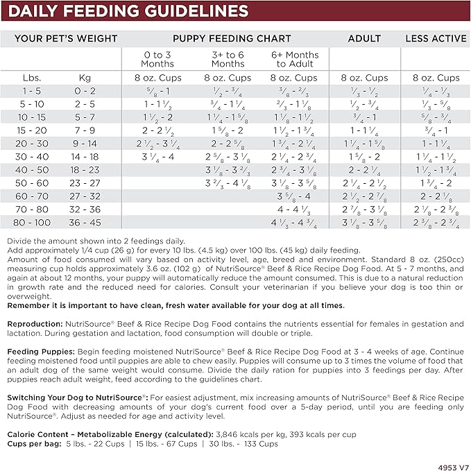 - CONTAINS: (1) 4LB Bag of NutriSource Beef and Rice Dry Dog Food