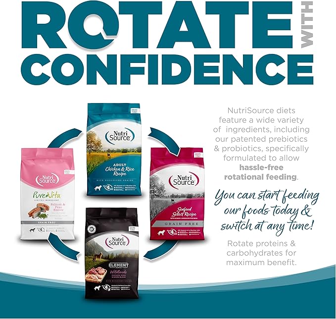 - NutriSource grain inclusive formulas deliver compact nutrition and include prebiotics and probiotics to help support a healthy gut
