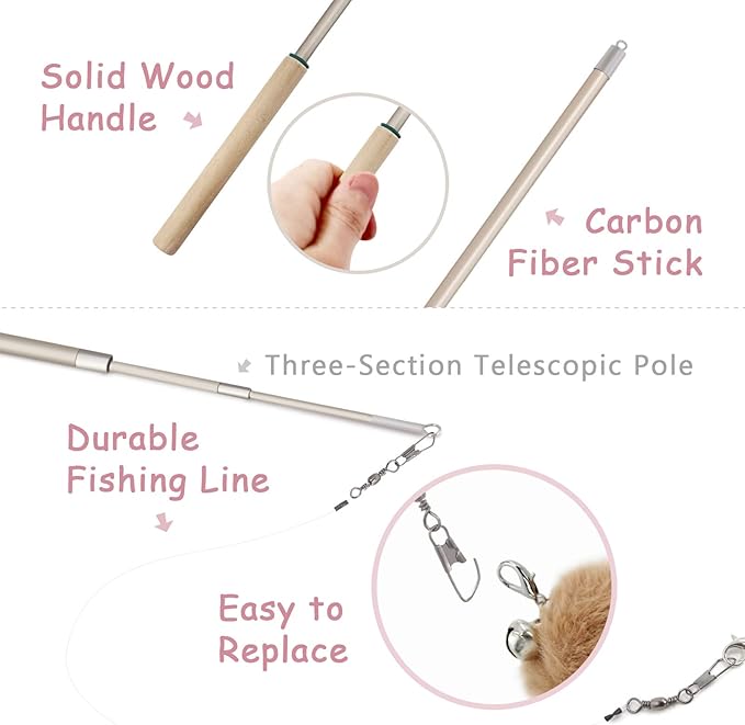 - 【Play with Confidence】Our cat wand toy made of safe, non-toxic materials, the feather refill is made of natural feather for more safe when playing. Please note that don't let cats swallow these toys as there is a risk of suffocation.