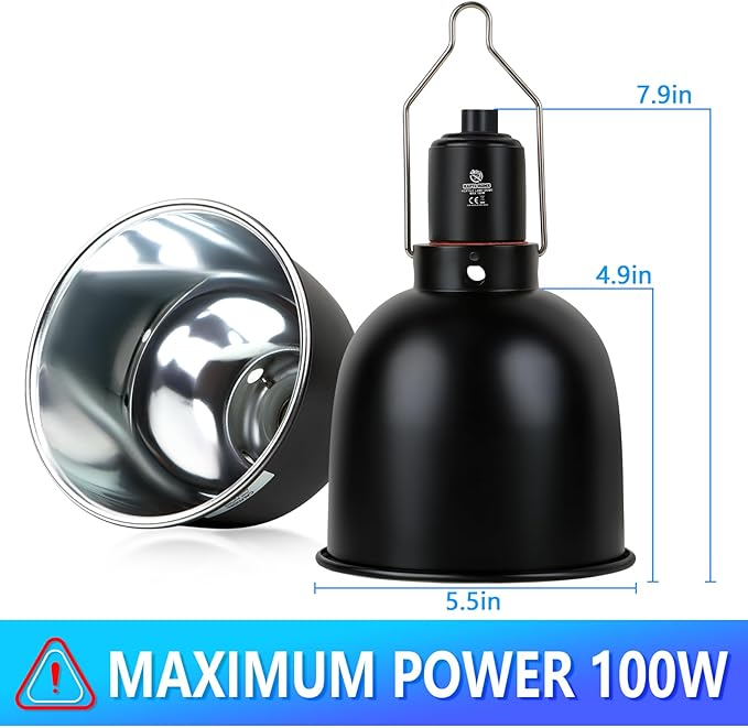 - 【Aluminum Alloy Reflection】:Our reptile light fixtures are designed with a deep dome aluminum alloy optical reflector, the interior of lampshade is made of metallic aluminum and has been polished, which improves the light reflection efficiency of the bulb and significantly increases the output of UVA and UVB.