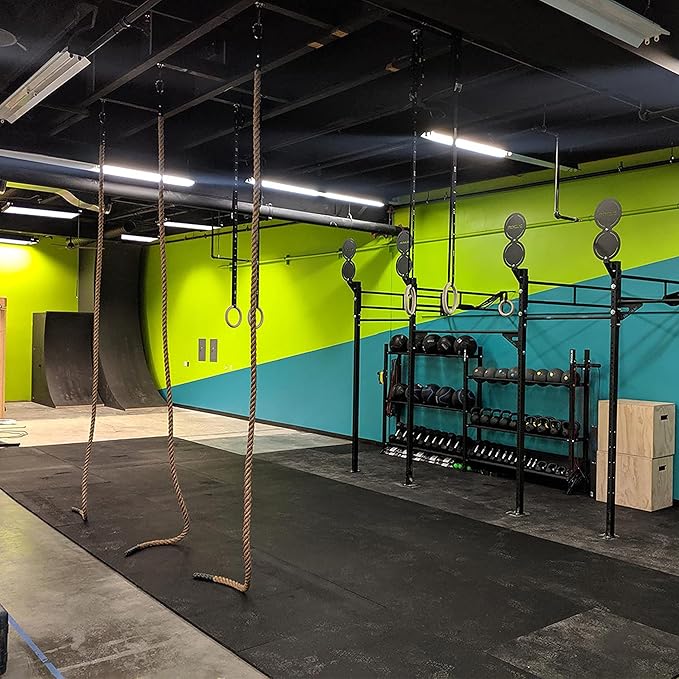 • 【Made in the USA】Crafted for optimal versatility and effortless maintenance, our 4' and 3’ wide rubber floor mat rolls, proudly manufactured in the USA, are a perfect addition to gyms, workout areas, and various commercial settings. These gym floor mats, designed for simple customization around walls, corners, and objects, offer a seamless padded surface with endless applications, making them ideal gym floor options.