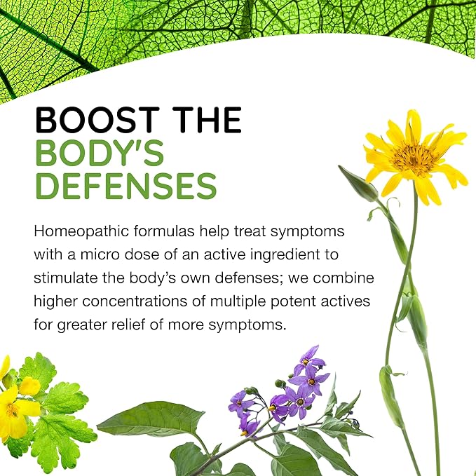 - BOOST THE BODY'S DEFENSES - Homeopathic formulas address symptoms with a micro dose of an active ingredient to stimulate the bodyβs own defenses; we combine multiple potent actives in multiple concentrations for greater relief of more symptoms.
