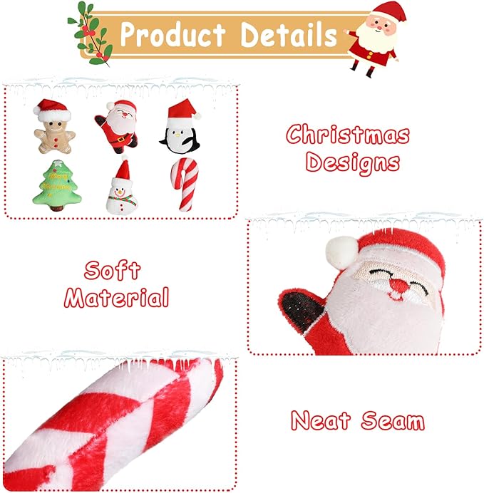 - Christmas Design:Featuring 6 cute Christmas designs,inclduing santa claus,Chrismas tree,gingerbread man,candy cane,penguin and snowman.The festive catnip toys will bring your home more Christmas atmosphere.