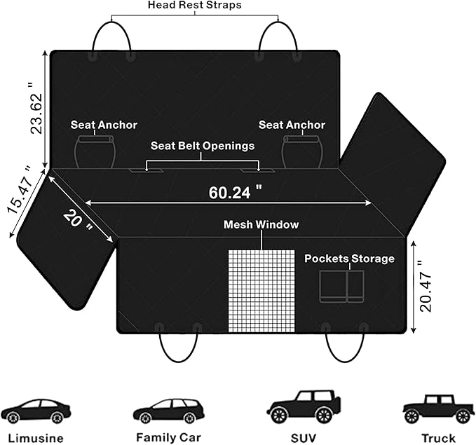- 🎄SIZE & MATERIAL - Maximum open size (60"W x64"L) dog car seat cover fits to different vehicles like STANDARD cars, trucks, SUVs, including baby car seats. Heavy-duty material with 600D oxford & NEW PU material is tough as nails, scratch resistant and 100% waterproof.