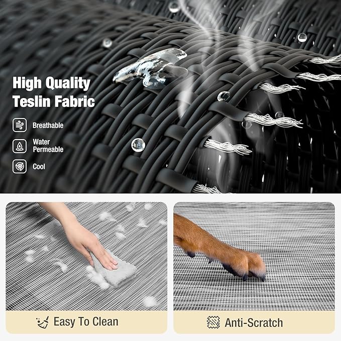 - Security Structure: Composed of robust Powder-Coated Steel tube, anti-scratch Teslin mesh, and the non-slip rubber feet can avoid slipping and scratches on the floor when dogs jump on or off. Great stability and high load-bearing ensure it’s a safe place for you dog to be calm and relax
