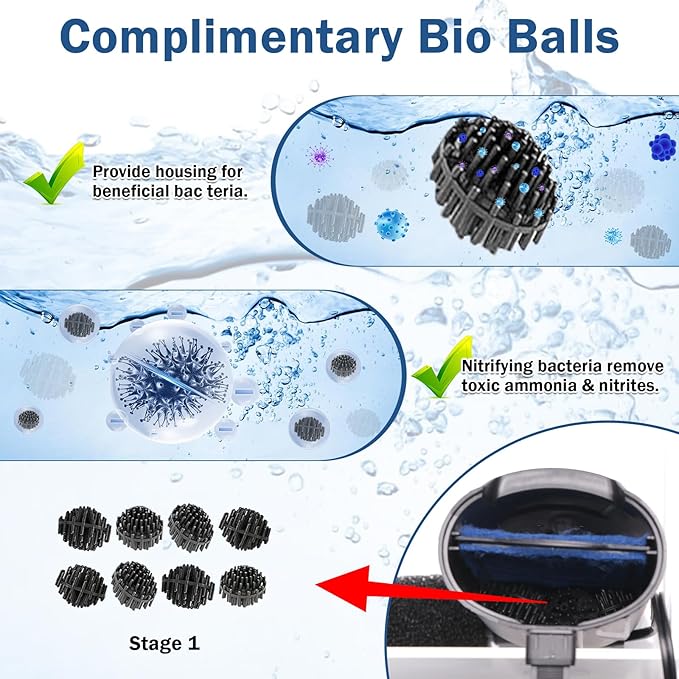 - [4-STAGE BIO FILTRATION] - This turtle filter attach activated carbon filter plate and bio balls, 4-stage bio filter cartridge help catch debris dense dual-sided mesh filters debris and fish waste, reduce odors and discoloration from water