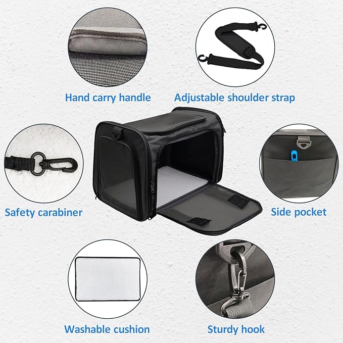 - Airline Approved : Airline approved design, you can take your pet anywhere, the cat carrying case is also perfect for car seats, you can take your pet with you on vacation, hiking, airplanes, outdoor activities, etc