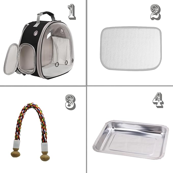 - Package Includes: 1 x bird backpack carrier; 1 x bendable rope stand perch; 1 x stainless steel plate, 1 x washable soft mat for replacement;