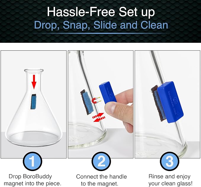 - ✌️ SAFE FOR YOUR GLASS - Don't worry about knocking over your delicate glass pieces when cleaning. With BoroBuddy Mini, you don't need to use an unwieldy brush or shake the tube. Our pads won't scratch your glass and are made from recycled materials.
