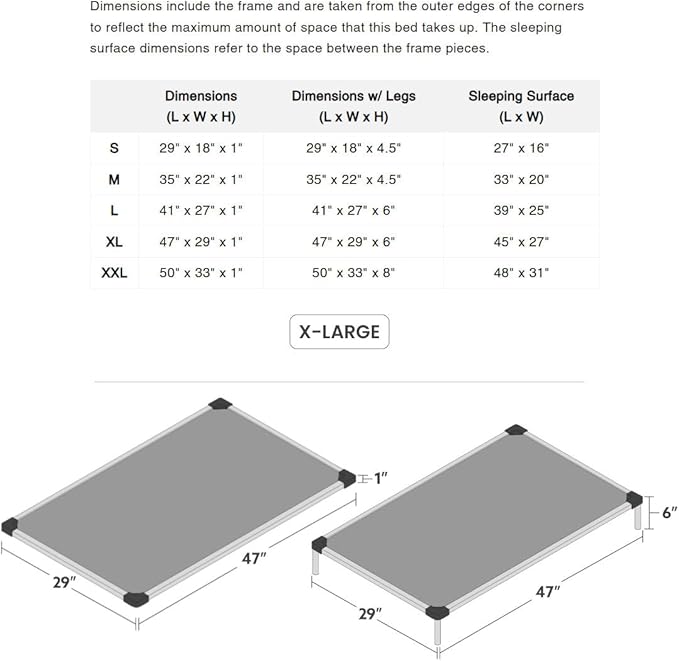 - Elevated and Padded for Extra Comfort: The bed's padded sling is filled to a 1.5” thickness with recycled polyester fiberfill for extra softness and insulation. When elevated with the included legs, it conforms to your dog’s body to eliminate pressure points and provide orthopedic-style support.