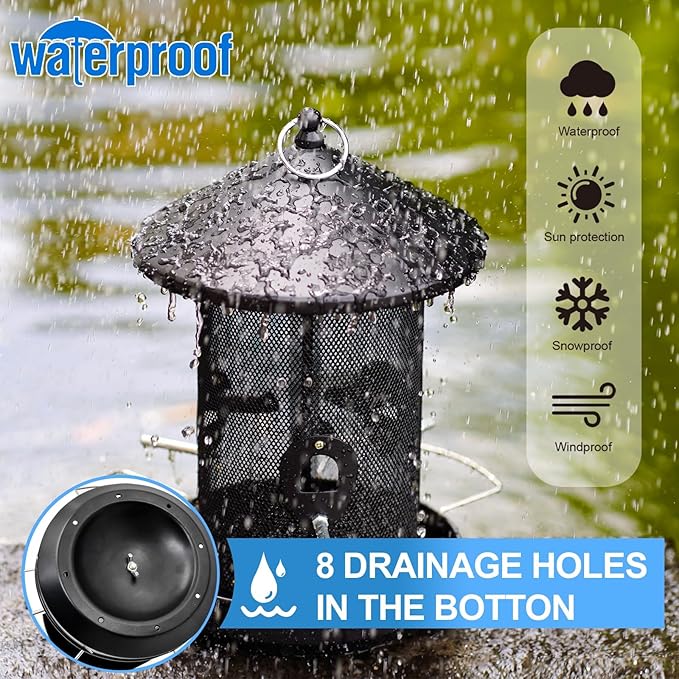- Metal Bird Feeder:The large bird feeders for outside hanging are made of durable, power-coated metal, will keep your seeds safe and your bird feeders long lasting. Rugged screens and waterproof coatings resist the effects of weather and outdoor elements