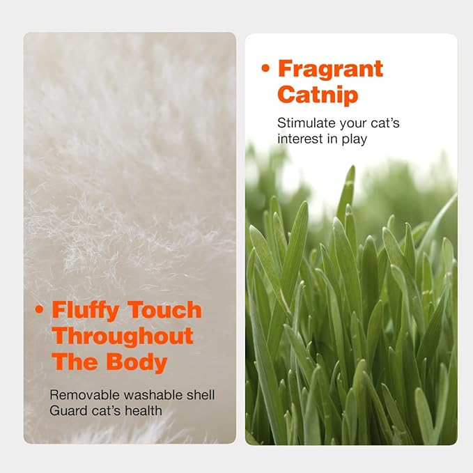 - 😽 [USB Rechargeable & Intelligent] Our toy is USB rechargeable with a long battery life. It's intelligently designed to pause every 15 seconds of inactivity, conserving energy. But don't worry, it springs back to life as soon as your cat interacts with it.