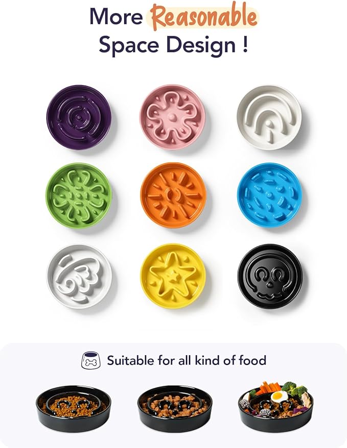 - Premium Ceramic, Durable and Stable: We use premium ceramic, not easy to damage, so your dog could enjoy his food safely and healthily. It is sturdy and heavy enough to be more stable. However, if your dog is using a slow feeder bowl for the first time, we recommend starting with a silicone bowl to help them get used to it.