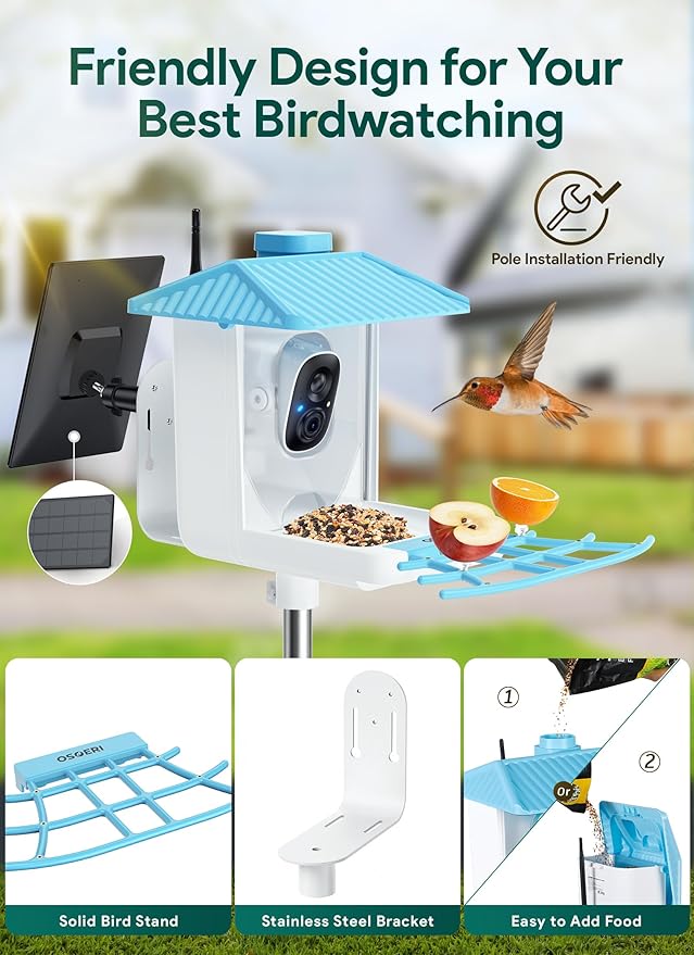 Osoeri Bird Feeder with Camera - Solar Smart Bird Feeder with AI Identify, 1080P HD Auto Capture Birds Video, Real-Time Alerts, Gifts for Family and Friends, 2.4GHz WiFi