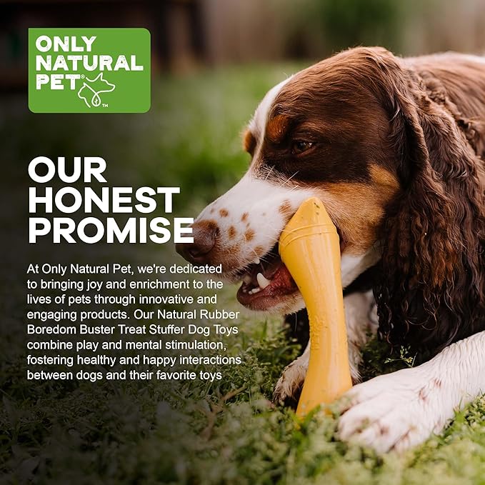 Only Natural Pet Rubber Boredom Buster Treat Stuffer Dog Toys - Interactive Stuffable Feeder Dispenser Fillable Durable Play Puppy Medium Large XS Chew Pup Hide Holder Easy Refill -BobbleBone/Yellow