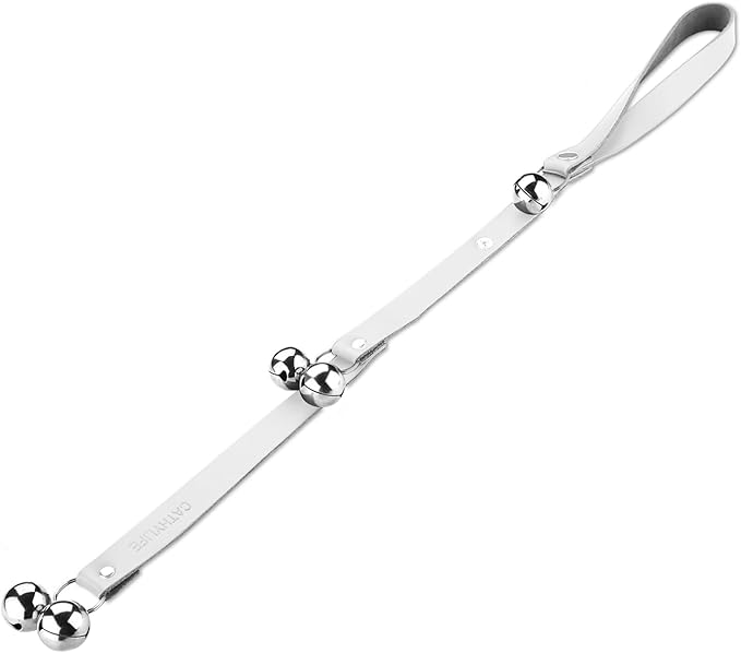 Leather Dog Doorbells for Door Knob/Potty Training/Go Outside, Length Adjustment Copper Dog Bell, Housetraining Hanging Bell, White Leather Silver Bells
