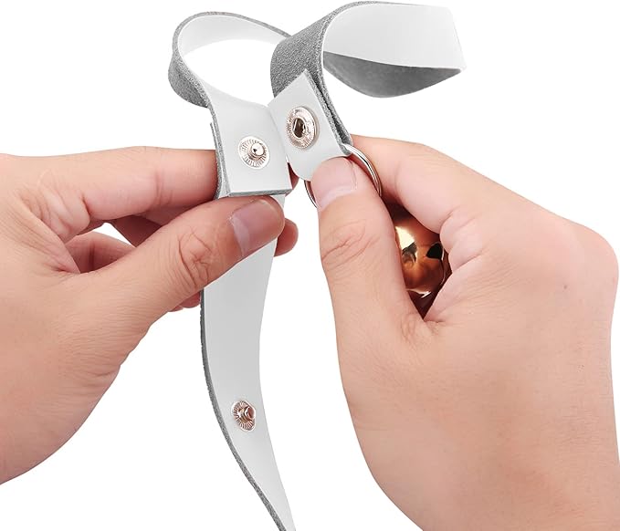 - If you do not want to install a dog door on your own door, this puppy bell will be a good choice, it is easy to use, just hang on the doorknob to start interaction with your puppy. Beautiful leather and bell can also serve as a nice decoration, if hanging the bell on the door handle causes inconvenience, you can buy our hook - B08RY66WD2, stick it in a suitable location to hang the bell.