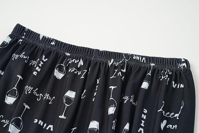 - Pajama Bottoms: Long pajama pants with soft elastic waist and letter and wine glass print to make relaxing as comfortable as possible.