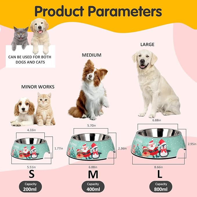 Christmas Xmas Pet Dog 2 in 1 Food Water Bowls - Non Slip Skid Proof Heavy Duty Pet Cats Dog Food Water Bowls for Feeding Small Dogs Puppies Cats Kittens-Green Christmas-S