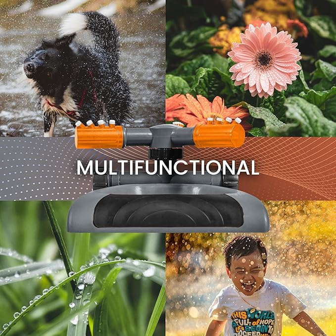 - Adjustable Rotating Arms: The Joeys Sprinklers features 3 fully adjustable arms. Customize your spray pattern to suit your area and distance.
