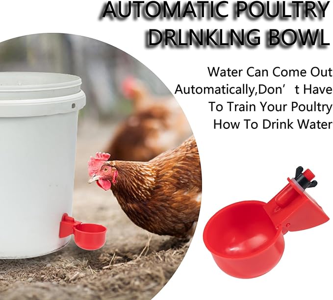 - Easy to install: The set includes 16 chicken drinkers and 1 special drill, whether you want to attach the cups to a bucket or pipe, it is very convenient. Removable cup design for easy cleaning and replacement without contaminating the water