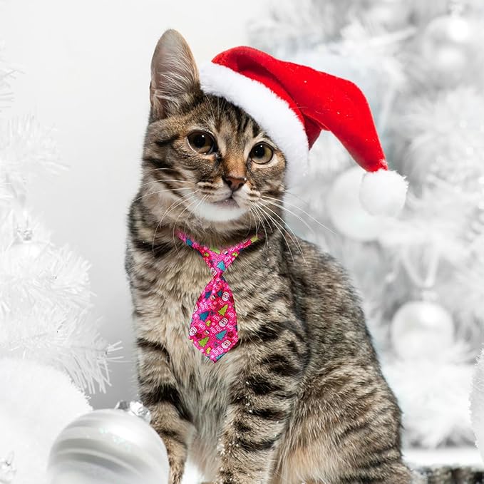 PET SHOW 10pcs Pack Christmas Small Dog Ties Neckties for Doggies Cats Adjustable Holiday Grooming Accessories Neck Ties Bowties Girl Boy Festival Costumes Puppies Party Gift Favor