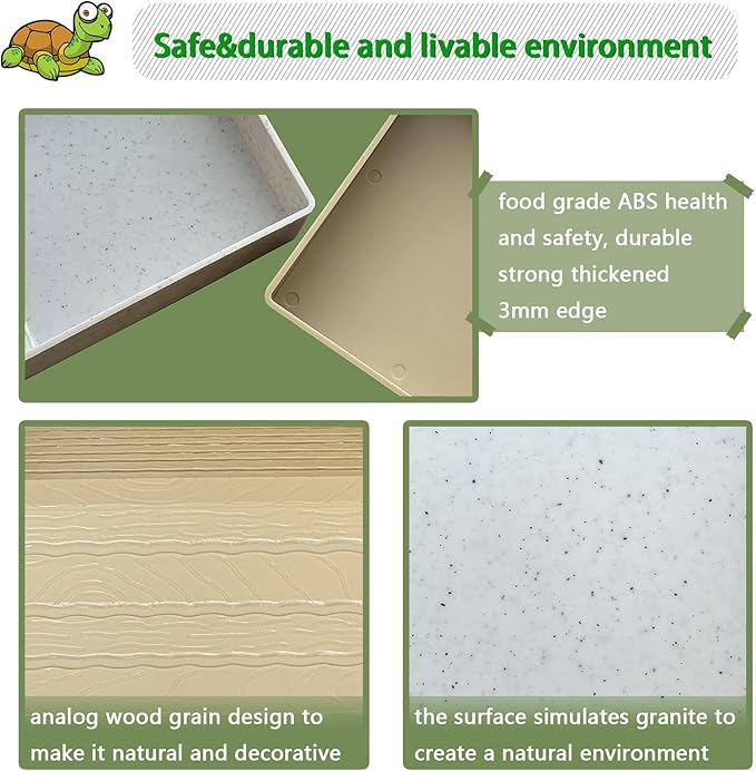 - 【High-Quality Materials】The turtle water channel with a ramp is made of high-quality food-grade ABS materials. Whose material is safe, high-temperature, durable, not easy to deform and easy to dry, and it is very suitable for amphibians to rest.