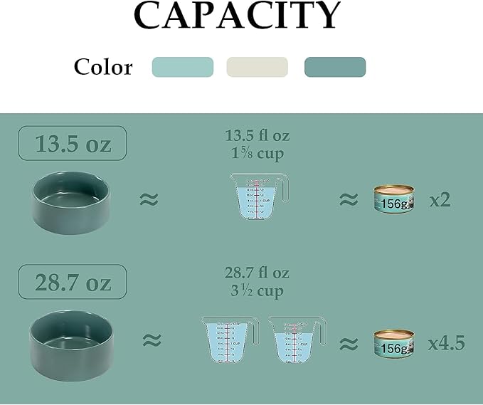 - [Capacity]:3.6 cups(850 ml, 29 Fluid Ounces) capacity of each single bowl, perfect for different breeds of kittens and dog who needs diet control due to the weight