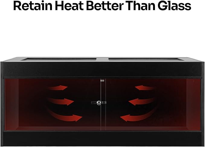 - 【Heat Preservation Better than Glass】Compared to glass terrarium, this thickened wooden reptile enclosure provides excellent heat insulation, more in line with natural reptiles environment. Black and non-reflective surfaces reduce stress in your pets.